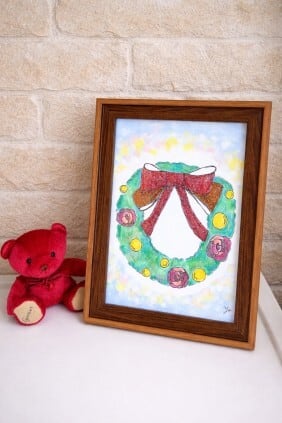 華やかなリースを描きました。